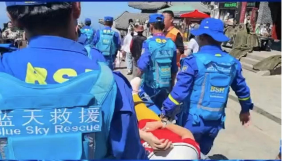 在整个登山比赛中,红十字泰山救援队一线队员分布在整个赛道从起点到终点的各个点位上,近距离为参赛人员做好安全救助工作,最大程度防止意外事件的发生,为第38届泰山国际登山节圆满完成贡献力量。