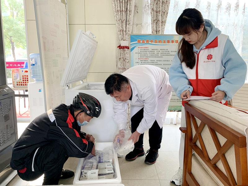 2021å¹´åº¦çš„é€ è¡€å¹²ç»†èƒžæçŒ®æ‹›å‹Ÿå’Œè¡€æ ·é‡‡é›†å·¥ä½œä»Ž7月份æ£å¼å¯åŠ¨ï¼Œç›®å‰å·²ç»è¶…é¢å®Œæˆå±±ä¸œçœçº¢åå—会分é…ç»™æ³°å®‰å¸‚çš„ä»»åŠ¡æŒ‡æ ‡ã€‚10月26日上åˆï¼Œæœ¬å¹´åº¦é‡‡é›†çš„610份æçŒ®è€…è¡€æ ·ç»ä¸“业快递公å¸é€å¾€ä½äºŽåŒ—京的ä¸åŽéª¨é«“库。æ¯ä¸€ä»½è¡€æ ·çš„背åŽï¼Œæ‰¿è½½çš„æ˜¯æ¯ä¸€ä½å…¥åº“志愿者的爱心ã€çƒè¡€ä»¥åŠæŒ½æ•‘他人生命的渴望。æ¯ä¸€ä»½è¡€æ ·å°±æ˜¯ä¸€æœµé¥±å«å¸Œæœ›çš„èŠ±æœµï¼Œåœ¨æœªæ¥æœ‰éœ€è¦çš„æ—¶åˆ»ï¼Œè¿™äº›å–„è‰¯çš„èŠ±ä¸€å®šèƒ½å˜æˆè•´å«çˆ±å’Œæ¸©æš–的果实。