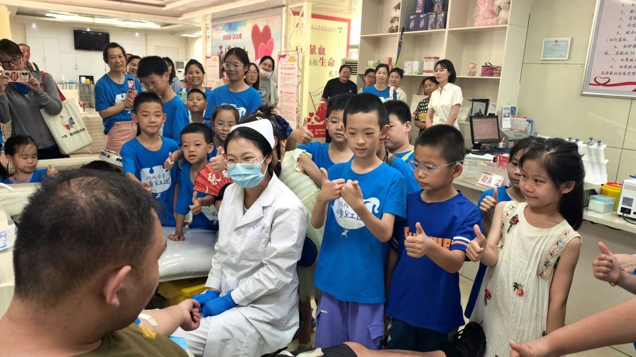 8月1日,泰安阳光志愿服务队组织小志愿者走进泰安市中心血站,以“沉浸式科普+实践”模式传播无偿献血理念。