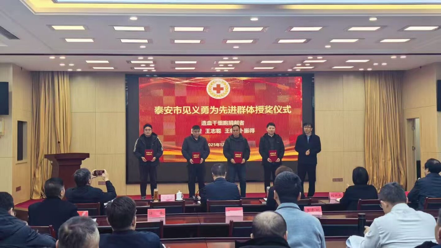 山东第一医科大学第一附属医院、市红十字会、市社会治安见义勇为奖励基金会共同签订《捐献协议书》,正式明确将人体器官捐献纳入见义勇为先进群体表彰范畴。市社会治安见义勇为奖励基金会为山东第一医科大学第一附属医院颁发“泰安市见义勇为爱心机构”荣誉牌。举行2024年造血干细胞捐献者“见义勇为先进群体”授奖仪式。为各红十字会基层组织颁发“红十字医学捐献登记服务站”铭牌。市委政法委分管负责同志在发言中,对医学捐献者的无私奉献精神给予高度赞誉,明确肯定了捐献行为在弘扬见义勇为精神、传递社会正能量方面的积极引领作用。
