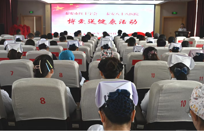 为弘扬“人é“ã€åšçˆ±ã€å¥‰çŒ®â€çš„红å字精神,切实把å¥åº·å…³æ€€é€åˆ°ç¾¤ä¼—身边,3月13日上åˆï¼Œæ³°å®‰å¸‚红å字会è”åˆæ³°å®‰å…«å八医院举办“åšçˆ±é€å¥åº·â€å…¬ç›Šæ´»åŠ¨ã€‚å¸‚çº¢å字会ã€å¸‚委宣传部ã€å¸‚委社工部ã€å¸‚残è”ã€å¸‚å«ç”Ÿå¥åº·å§”,泰安八å八医院有关负责åŒå¿—åŠâ€œæ³°å¥åº·â€ä½“检å¡å—赠代表共80余人å‚加本次活动。